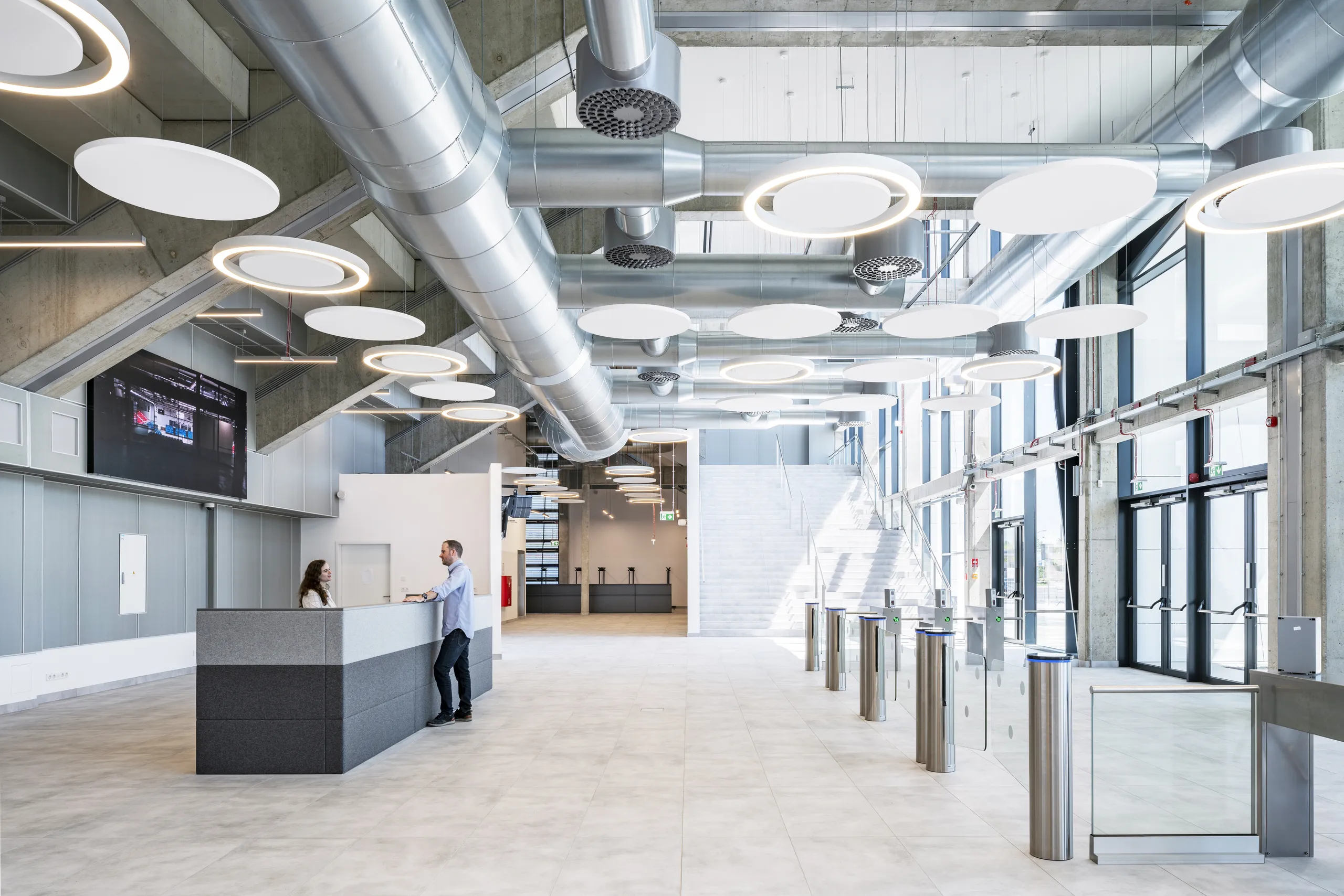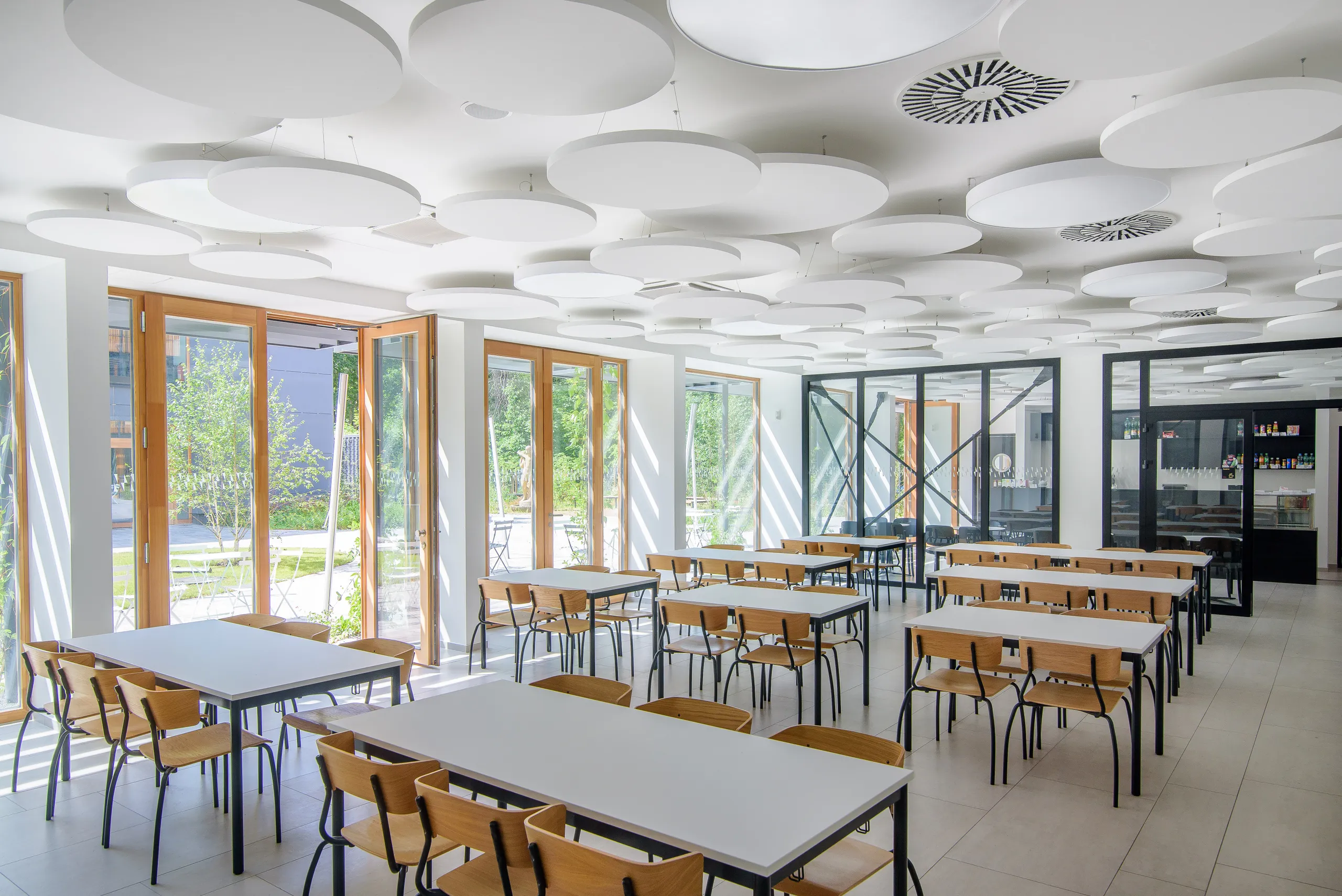 The architects’ key challenge was to reorganise the space to serve many functions while reducing noise. According to Aleksandra Czubaszek-Siluch, “In this project, Rockfon ceilings play a very important role - they emphasise the character of the interior.” Full white suspended ceilings were used in sanitary areas to create visual clarity, while floating islands in the café and staff rooms softened the environment and reduced the “hospital look.”