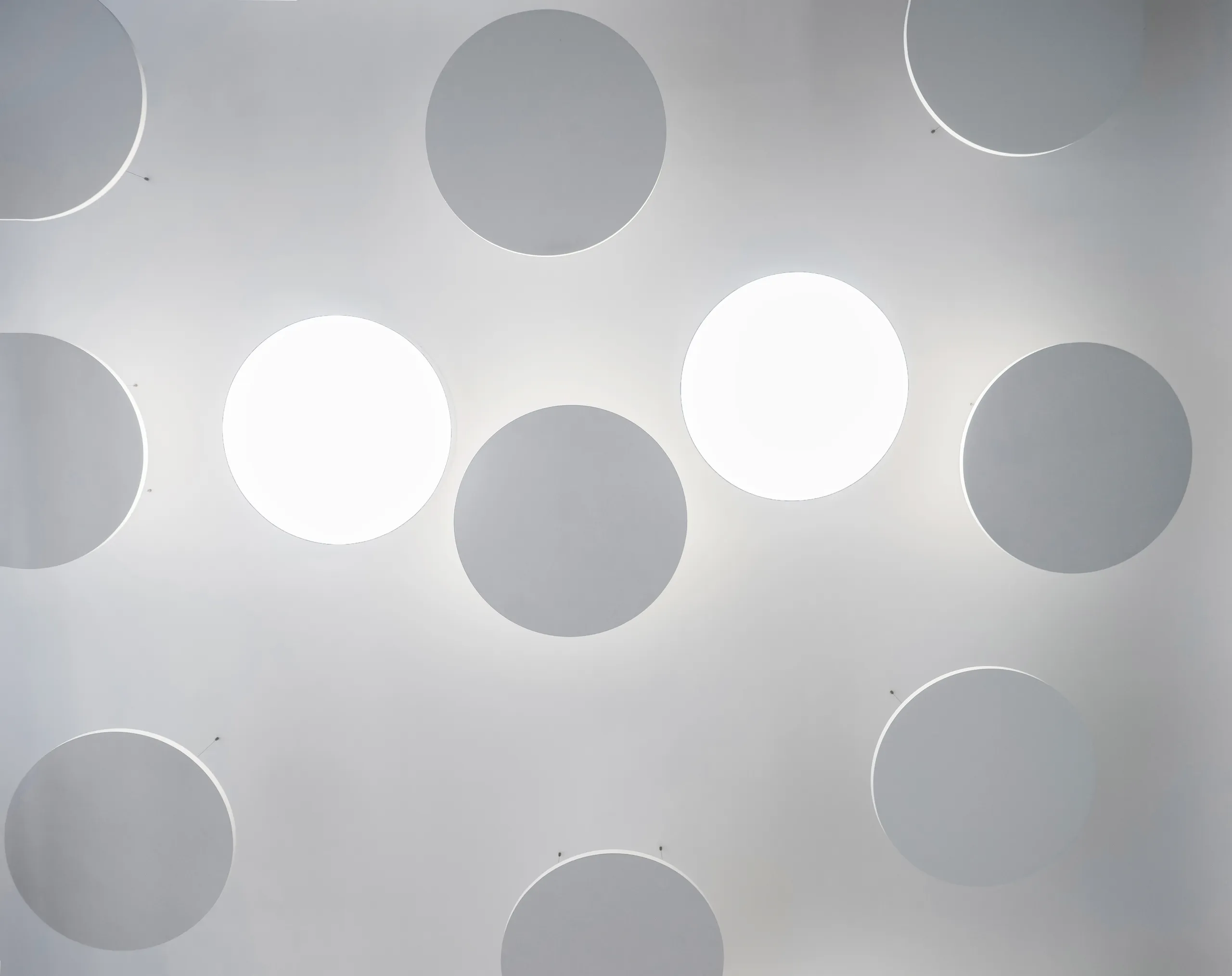 Activate the floating panels by complementing – or even anchoring – your compatible lighting of choice, varying suspension heights and spacing, and mixing colours for elaborate ceiling island compositions.
