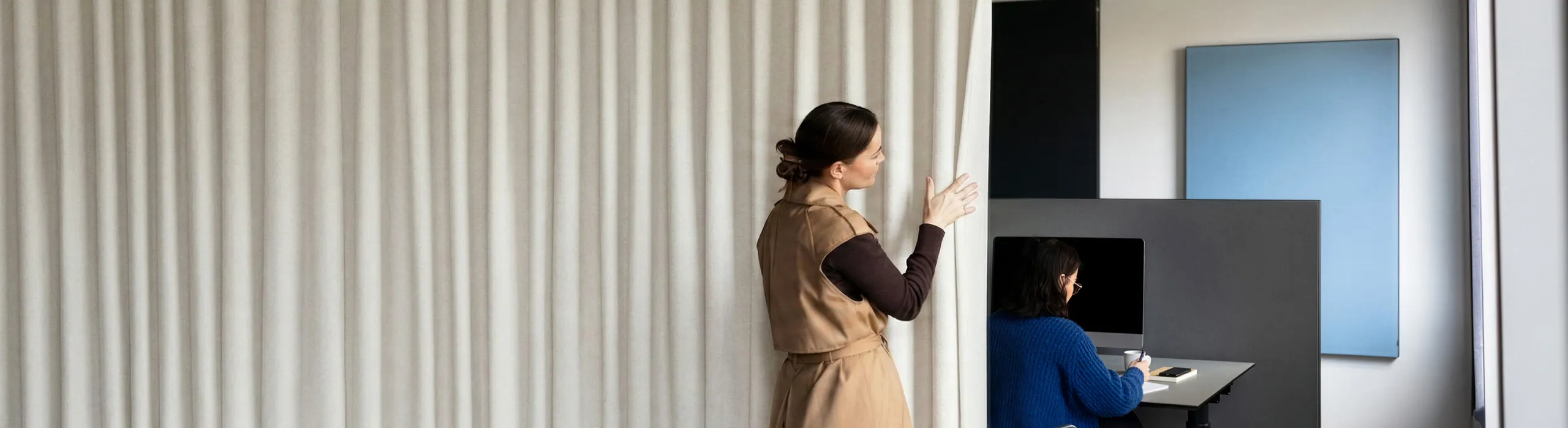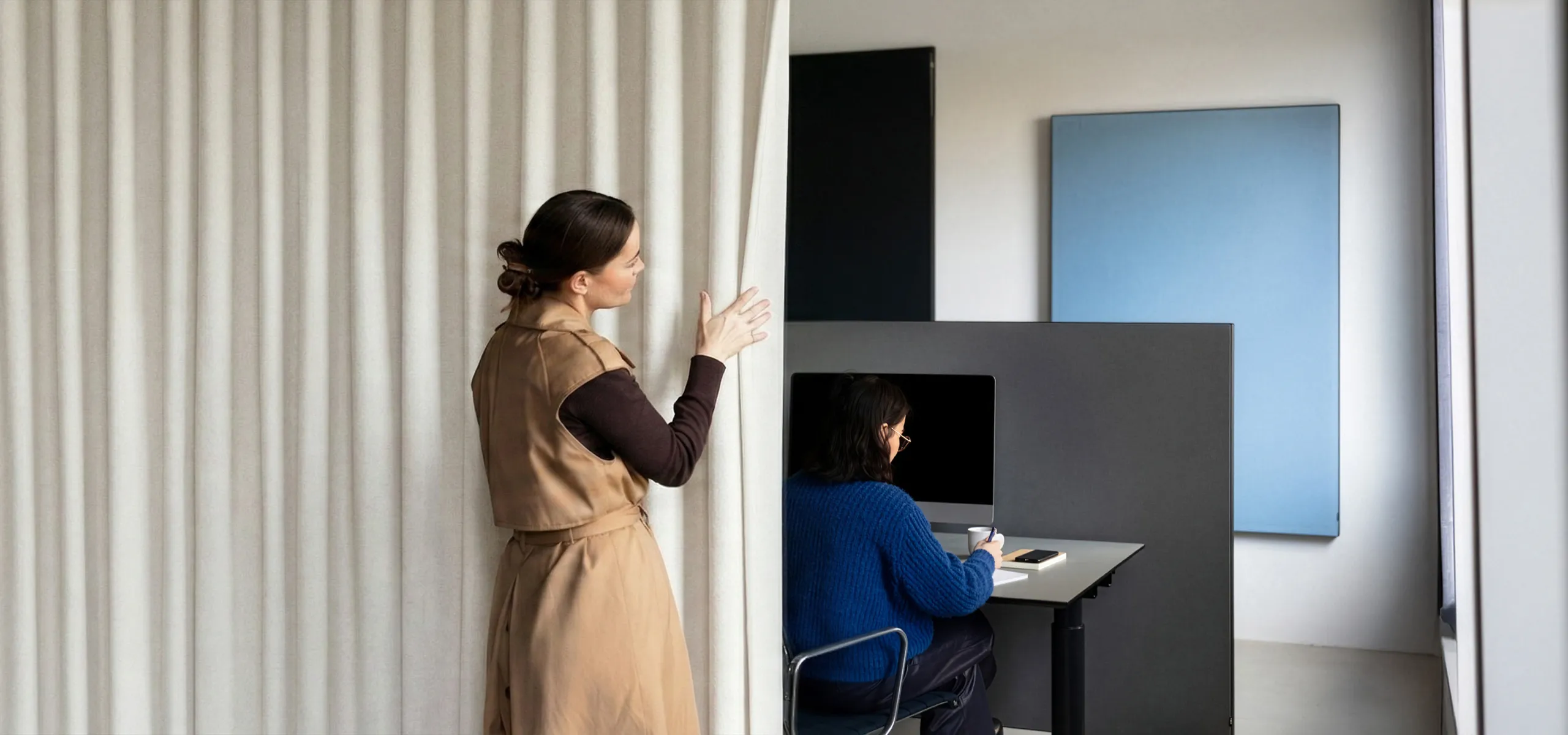 From easy demounting to changeable surfaces, our wall panels, floor screens, and hanging dividers maintain noise control as layouts shift – leaving room for change.